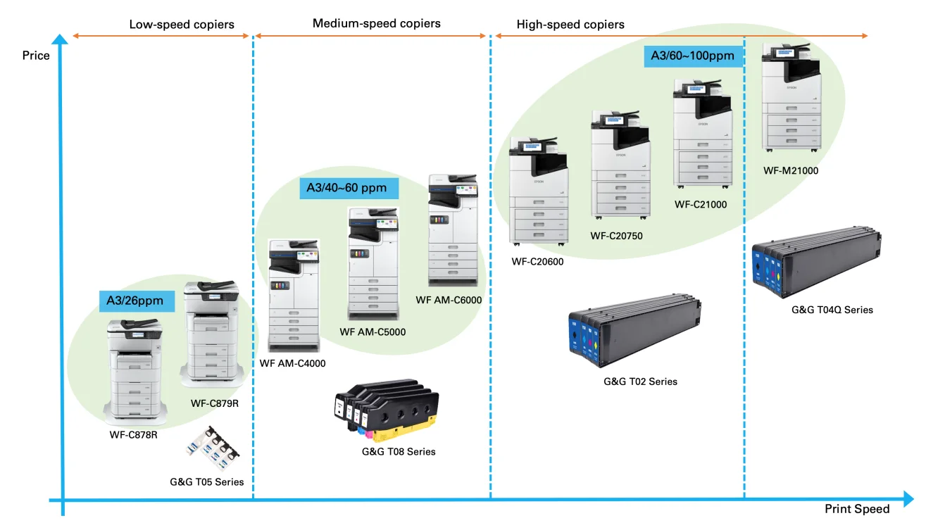 The model in stock | First generation : LX10000 ,WF-C17590 ,WF-C20950 Second generation: WF-C21000 ,WF-M21000 ,WF-C20600 , WF-C20750 | Epson A3 size: WF-S7110 , M7110 ,WF-C8690A ,WF-C8190 WF-C869R, WF-C878r ,WF-C878r Epson A4 size: WF-C5290, WF-C5210, WF-C5390, WF-C5310, WF-C5790,WF-C5710,WF-C5890,WF-C579r | |||||