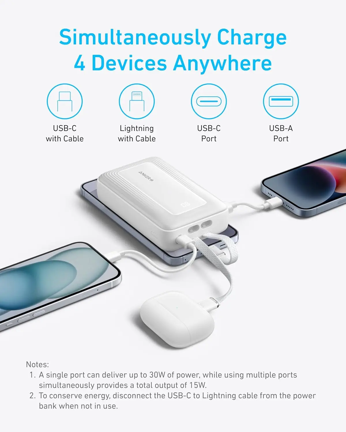 Cindy Power BANK For Power Bank, 10,000mAh 30W Max Fast Charger with Built in USB C and MFi Certified Light Cables,