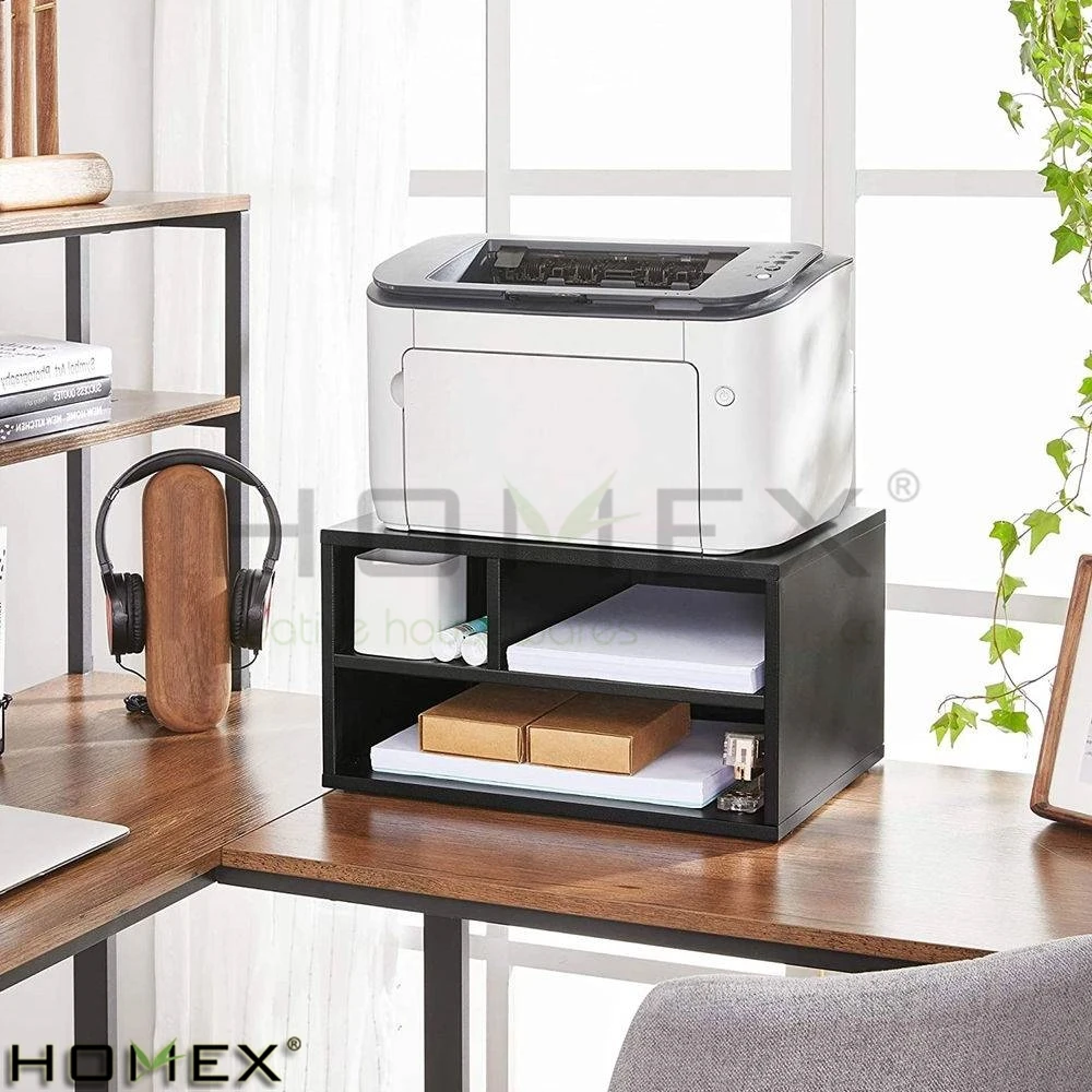 Product Name | Modern Sturdy Bamboo Wood Workspace Desk Organizer Black Metal Office Printer Stand with 2-Shelves | ||||||