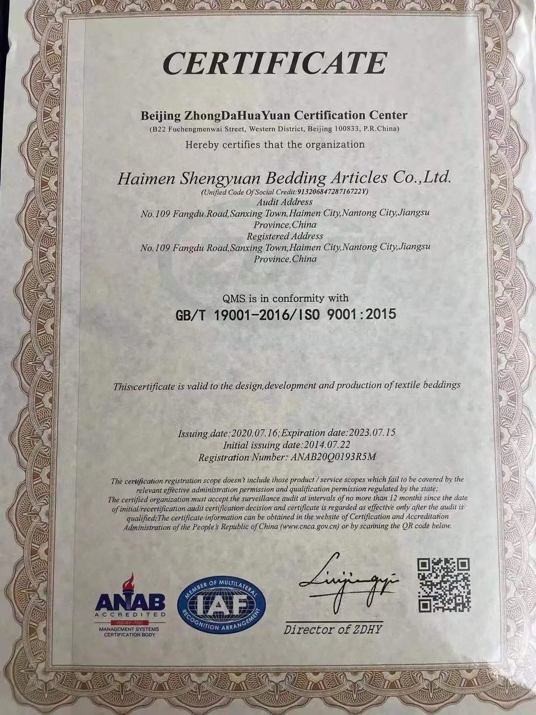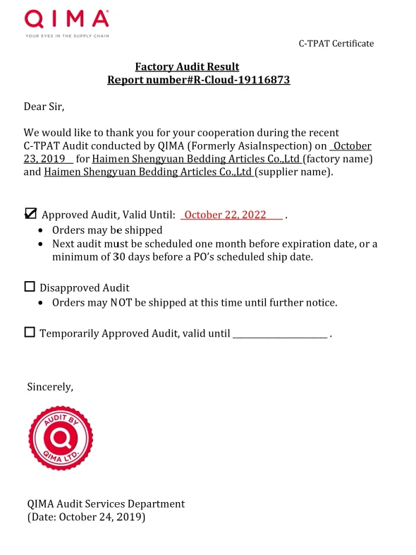 Haimen Shengyuan Bedding Articles Co., Ltd. is located in Haimen City, which is the biggest textile wholesale market all over the country. Our company covers an area of 10000 square meters and has more than 200 employees. Our company has produced beddingarticles for more than 10 years and our annual production capacity is above 500,000 sets. Now, our company has been a professional company integrating the innovation, manufacture, sale and after-sales service, and has passed the evaluation of ISO9001:2000 quality management system certification and ISO14001:2004 Environmental Management System Certification.