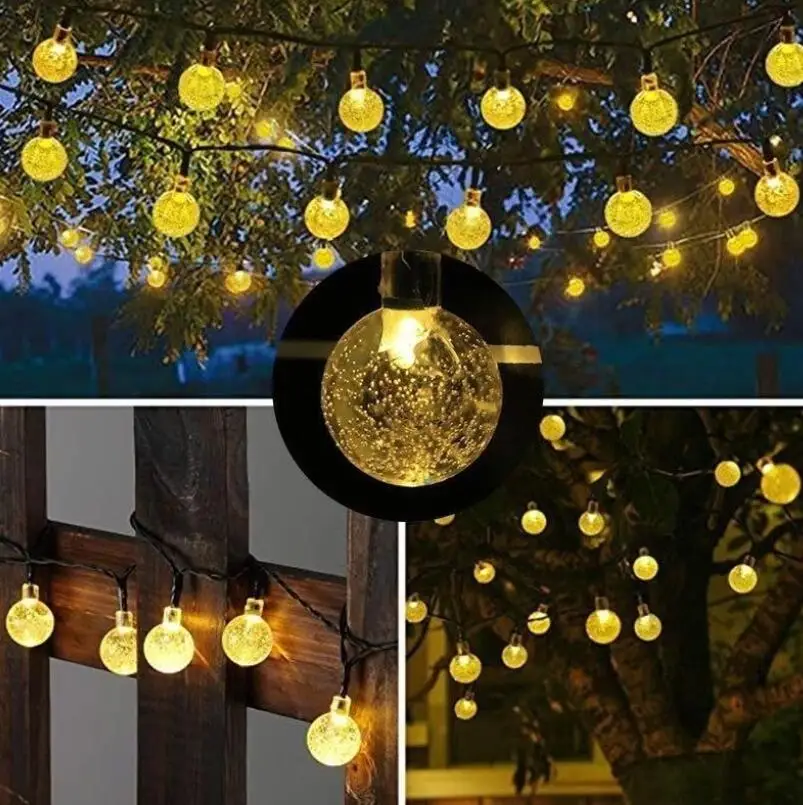 Waterproof solar light string LED Bubble Ball round bead crystal ball light string outdoor camping atmosphere decorative lights