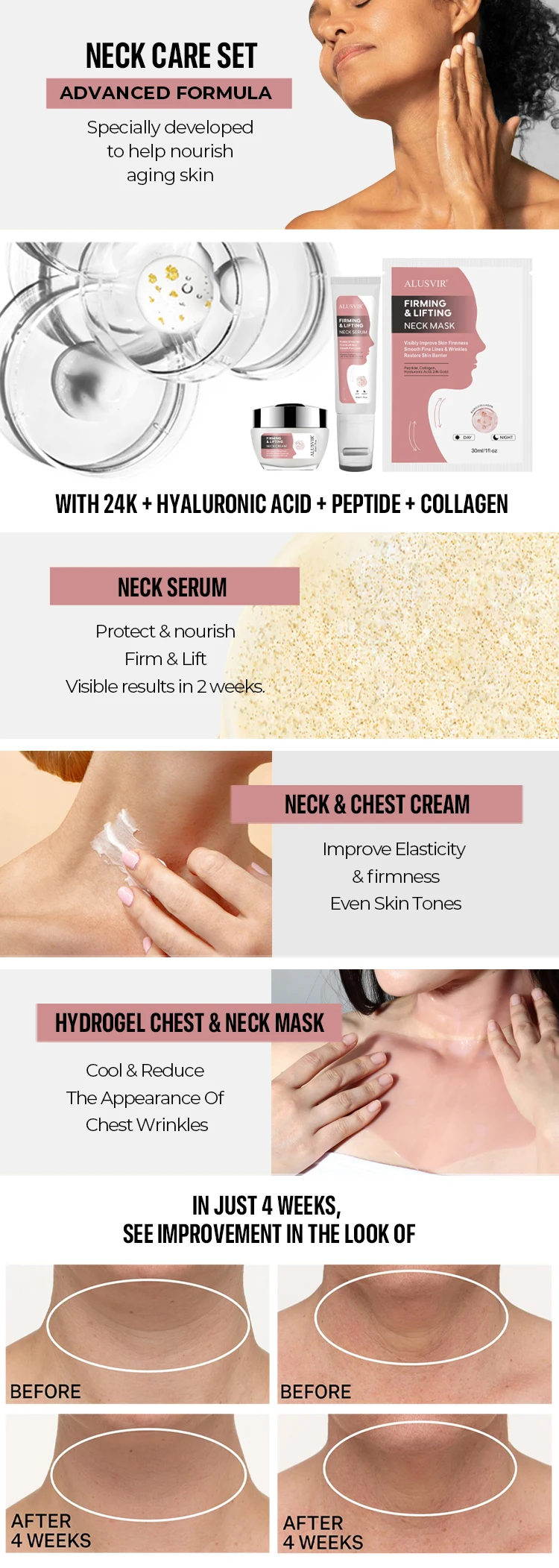 Private Label Cosmetics Beauty Women Breast Chest Neck Care Product Firm Lifting Tightening Fine Lines Neck Serum Cream Mask Set