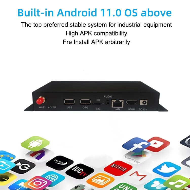 System Management | Original Android system, open root permission, can be customized for product development Real time remote monitoring, system crash self recovery, 7 * 24-hour unmanned operation Support OTA remote upgrade; Support USB upgrade Support startup animation definition Support switching between server/standalone mode Support Wi Fi hotspot Support software watchdog |