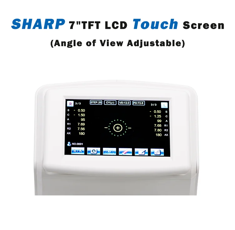 Feature | New Optical System, Unique Imaging Impression Hartman Imaging Analyzing and Processing Technology Accurate Measurement Result Bright 7” TFT Tilt Touch Screen Can Move Front and Back Freely Motorized Chinrest Auto Paper-Cutting Printer Auto Tracking and Focusing During Measuring |