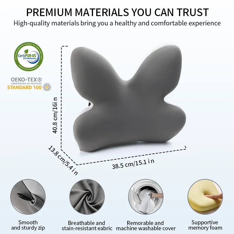 The lumbar pillow has two adjustable, upgraded straps, so no matter how you move, the back cushion will stay firmly attached to any office chair, computer chair, car seat, SUV, truck or other home office accessories.