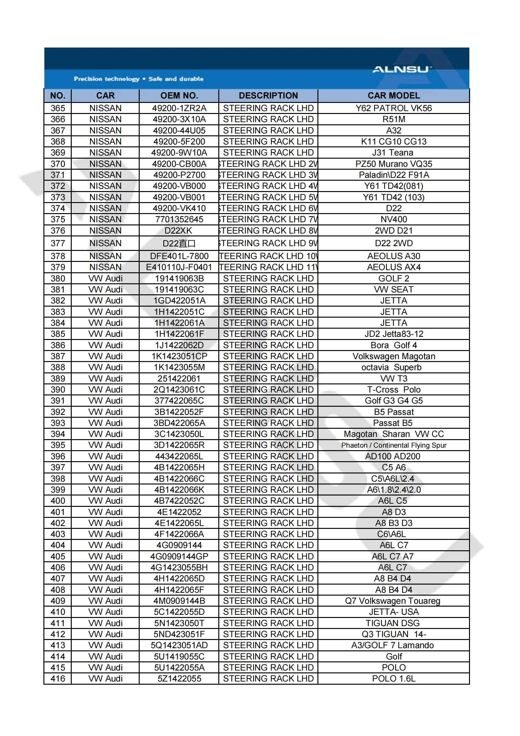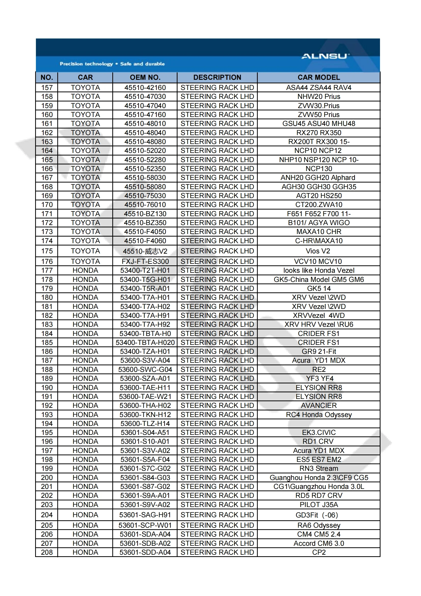 PARTS NAME | STEERING RACK | |