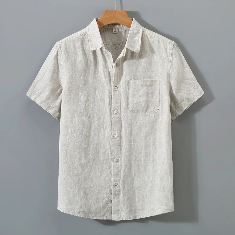 MAM381 XX255 Mens Short Sleeve Shirts Turn Down Collar Short Sleeved Summer Hot Casual Linen Men Shirt