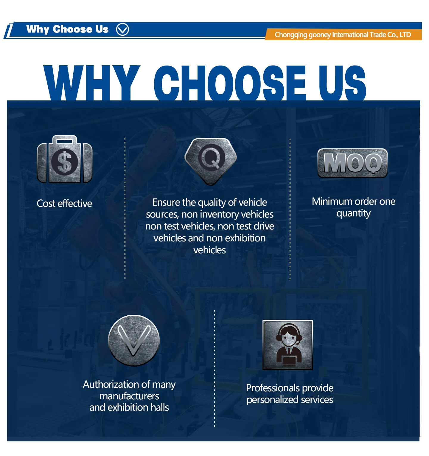 Chongqing gooney International Trade Co., LTD,is a trusted electric vehicledealer with professional certificate support.