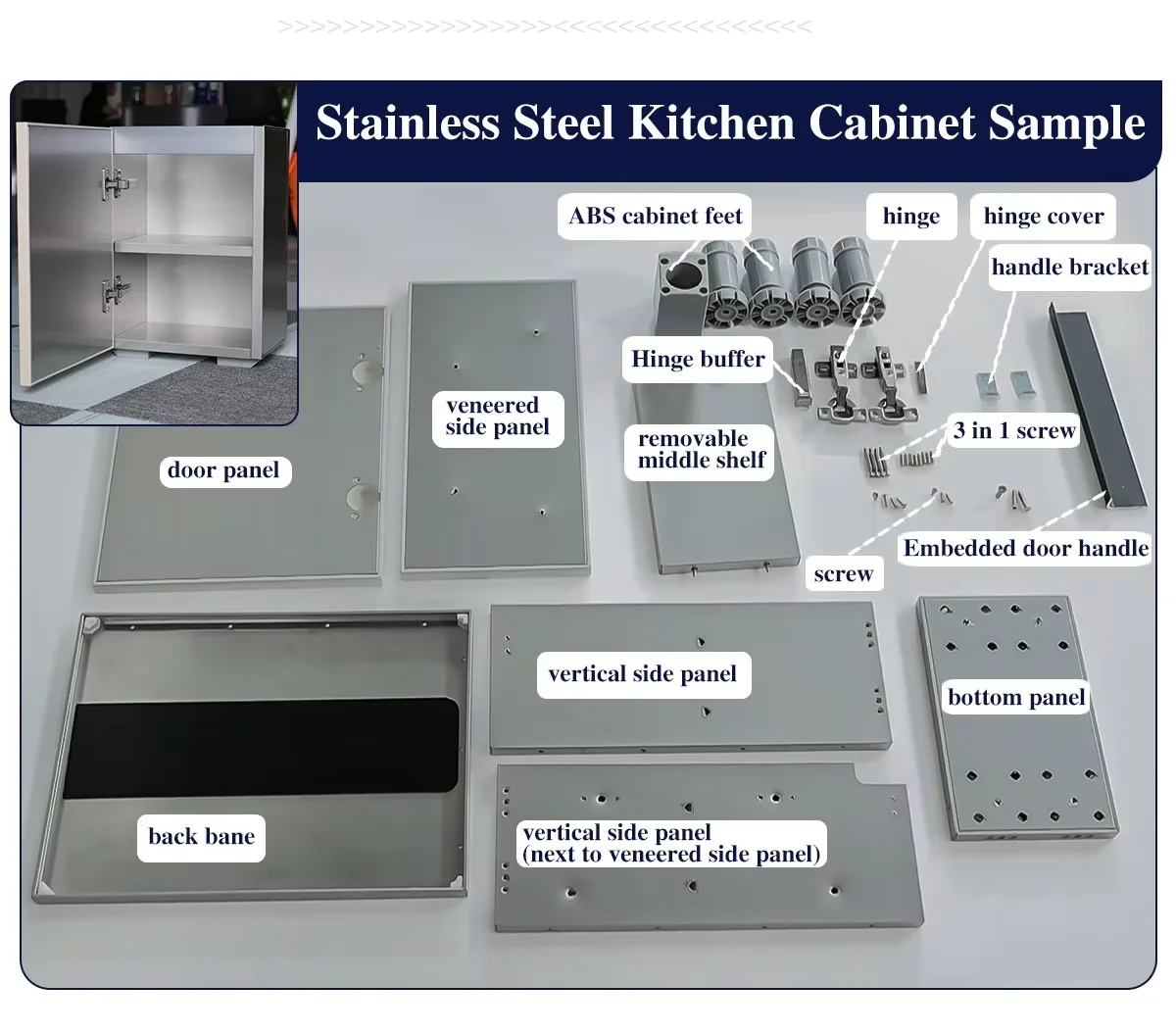Complete Sets Home Kitchen Furniture Cabinet Classic Stainless Steel Kitchen Cabinet Supplier