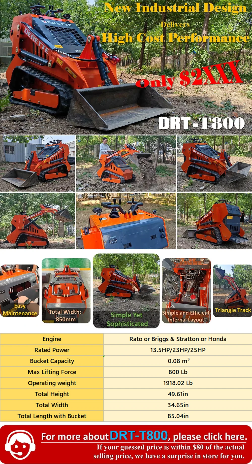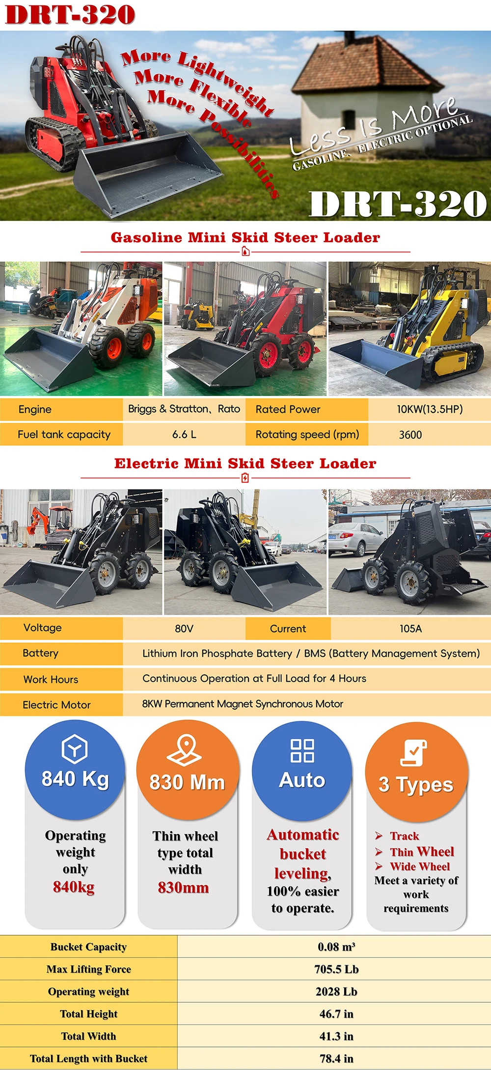 Bucket Capacity | 0.08 m³/ 3 ft³ | Max Lifting Force | 320 Kg/705 Lb |