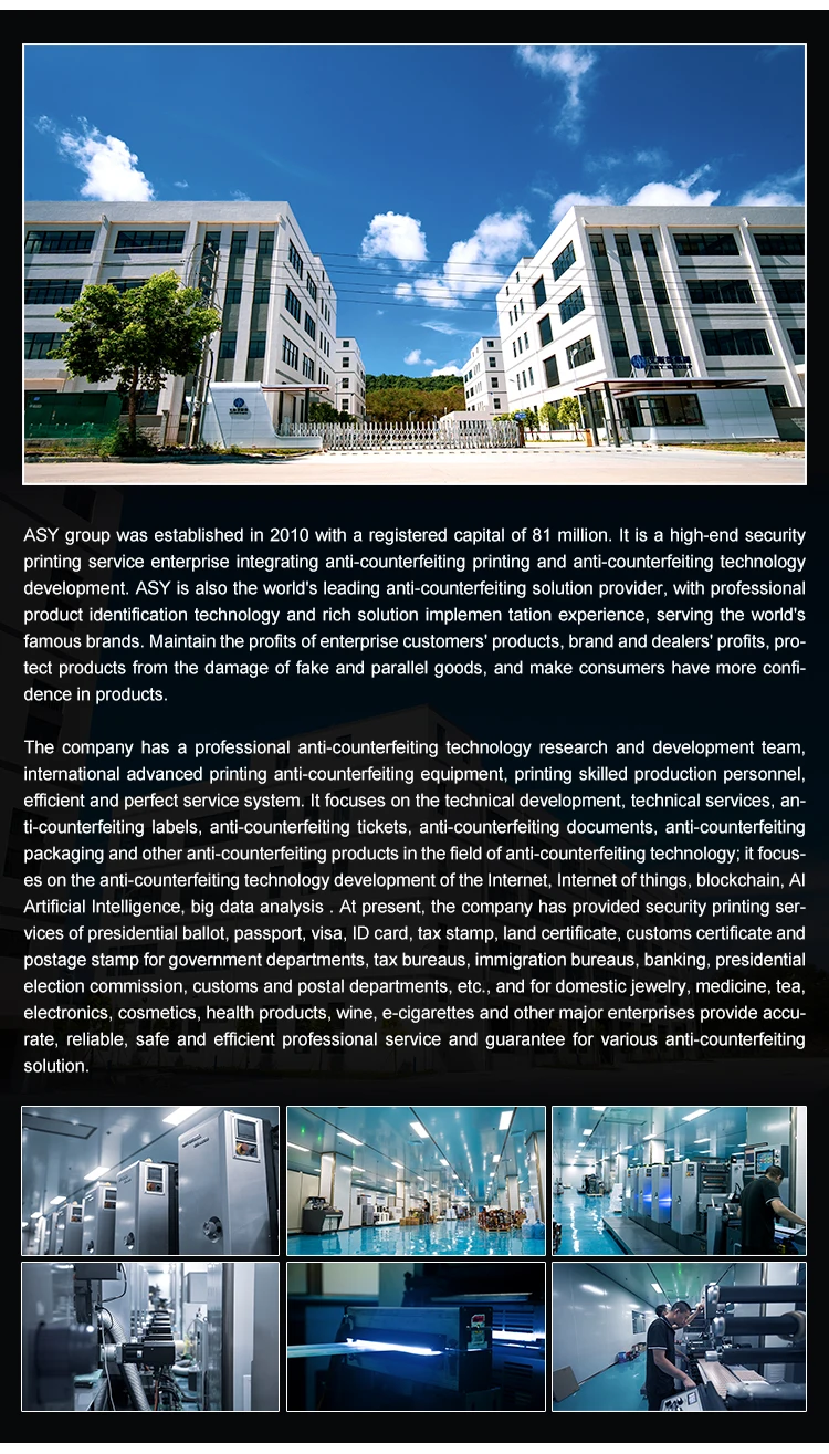 A: Usually our MOQ for certificates is 1,000pcs and MOQ for labels is 10,000pcs, because the company has a variety of equipment, but also can be customized according to customer needs, different number of printing machine.