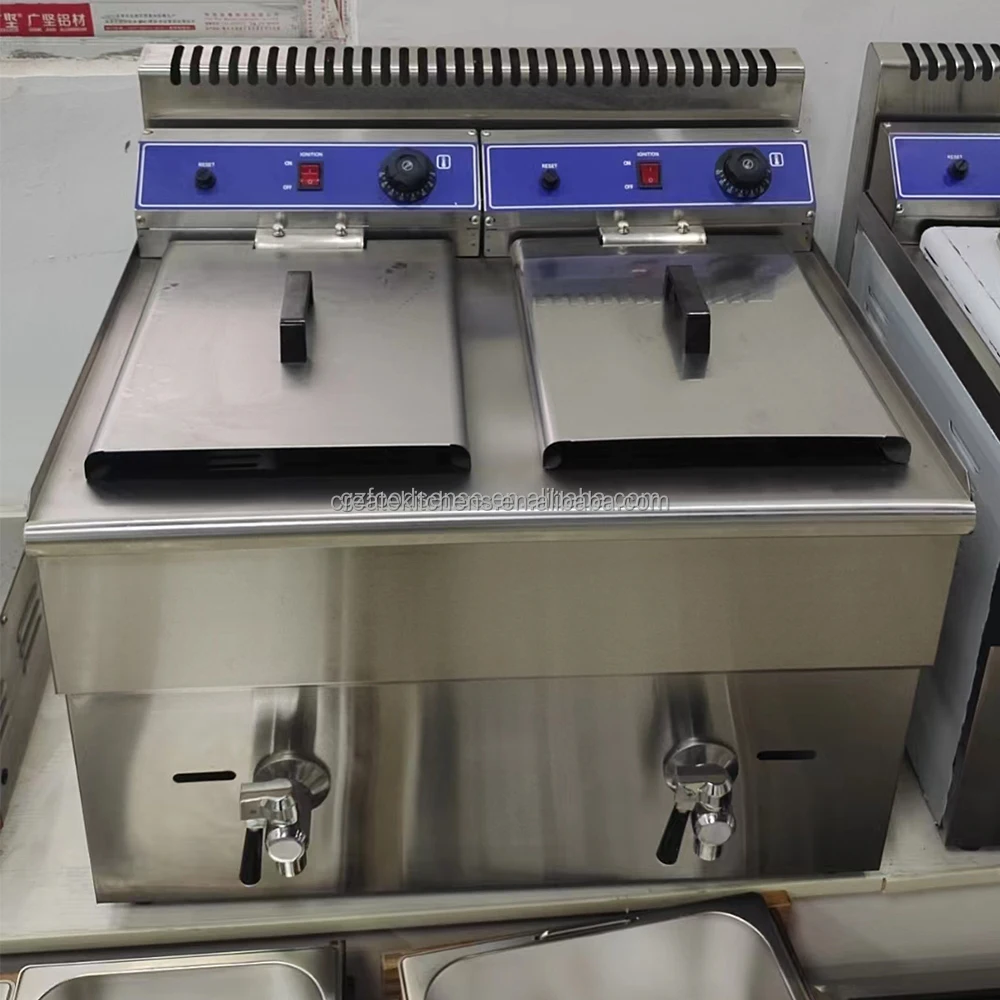 1.Easy Clean Stainless Steel Surface, luxurious and beautiful 2.Thermostatic Control rapid temperature increase 3.Battery Electronic Ignition (uses 2 x D batteries) 4.Large Capacity with large stainless steel frying basket 5.With safe protect system, when the flame failure the gas will cut off and with a alarm sounding
