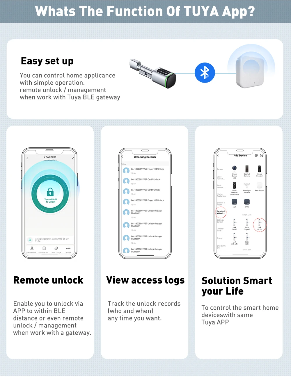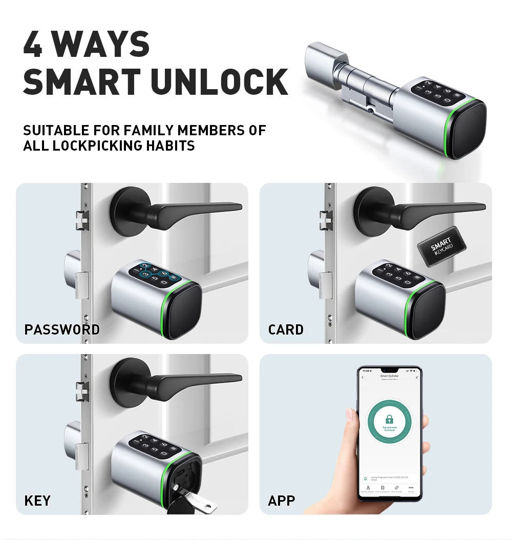 Unlock Way | Password, Mechanical Key, IC/NFC Card, Key Fobs, App |