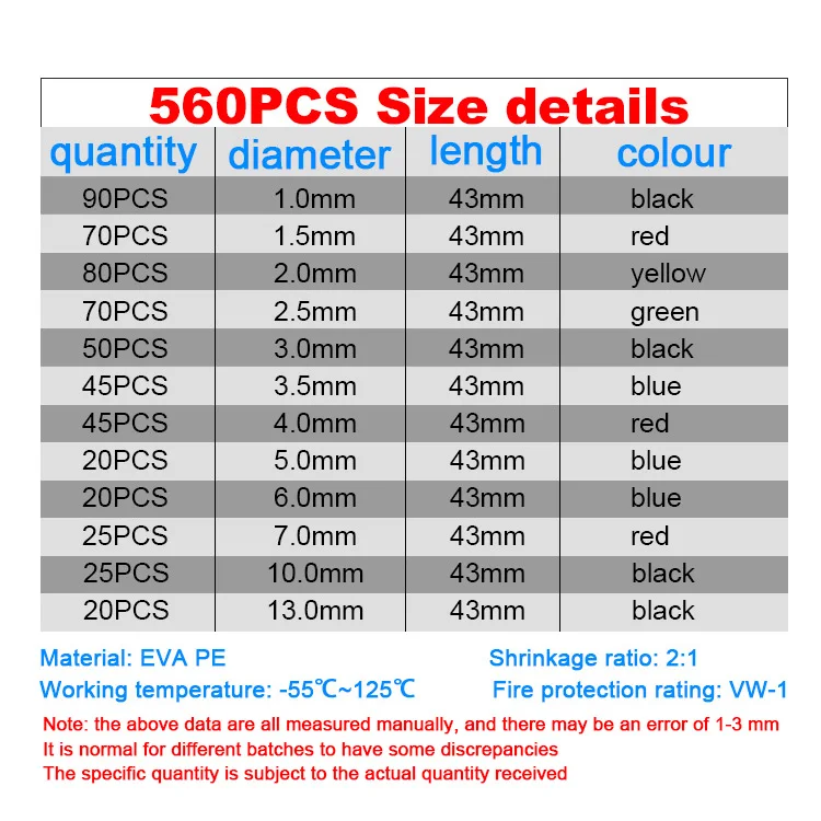 560pcs Polyolefin Shrinking Assortment Heat Shrink Tube Wire Wrap Cable Insulated Heat Shrink Tubing 2:1 Waterproof Pipe Sleeve | |