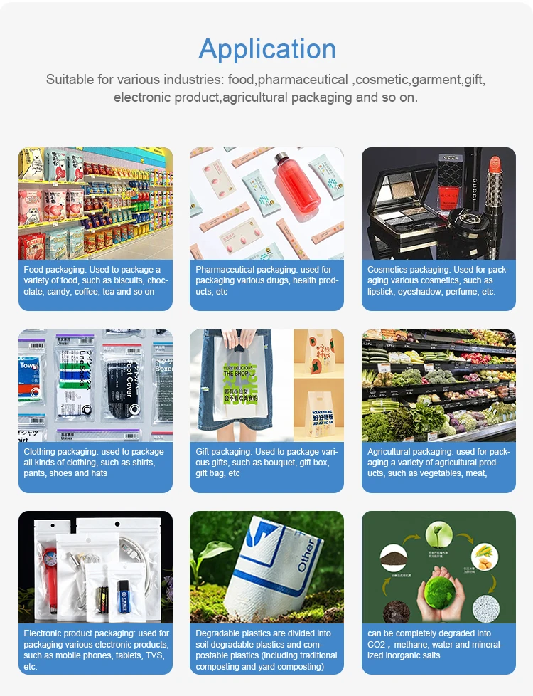Applications | Home use for food freezer,storage;retail and promotional packaging purposes; hospital,electronic, bank field use; Customization for special use,etc | |