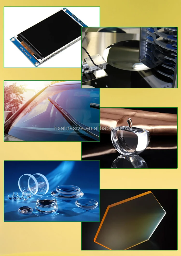 4. Polishing materials such as tempered glass for airplanes, car windshields, and flat glass.