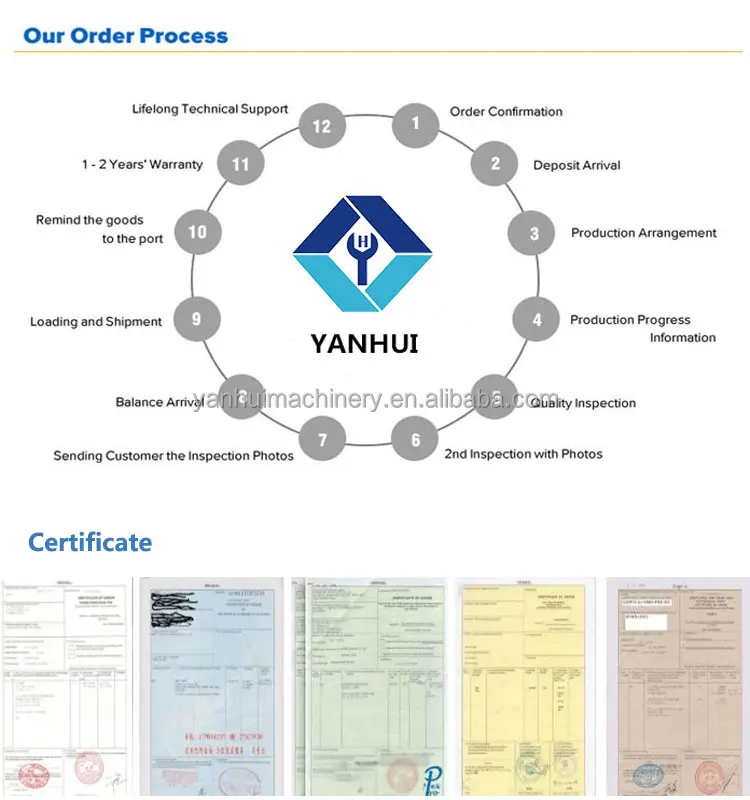 We offer one year warranty for the whole machine except easy broken parts, Providing the spare parts with favorable price all the time 24 hours online service.