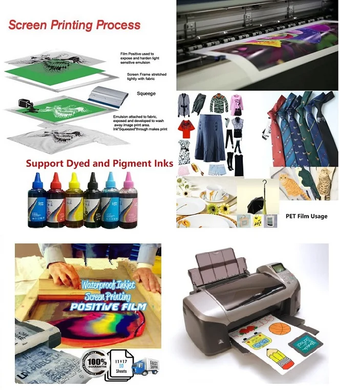 Ink support: Water based dye ink or pigment ink Application: Screen printing plate making, flexographic printing plate making,label printing Printer support: Roland/Canon/EPSON/MOVAJET/MUTOH/Mimaki/HP ink-jet printer