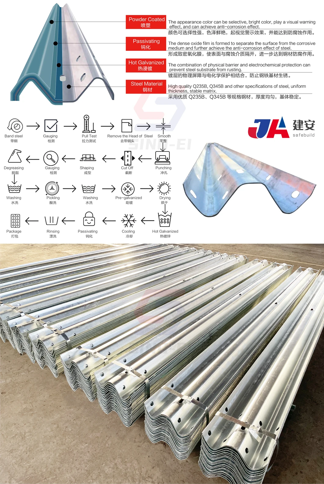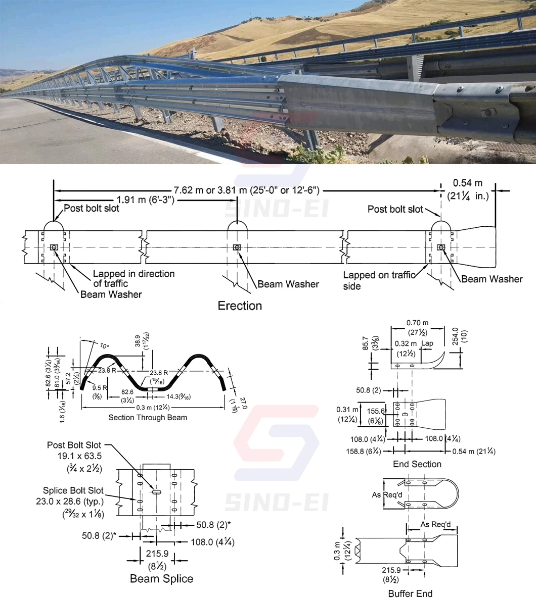 W-beam | 4320*310*85*3/4 mm | 250 Pcs | 250 Pcs | Hot Dip Galvanized: 60-100μm; Powder spraying: Pre-Galvanized + Powder spraying 50-90μm; | |||