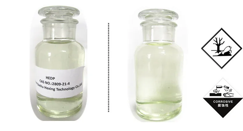 2. HEDP has good chemical stability under high pH value, hard to be hydrolyzed, and hard to be decomposed under ordinary light and heat conditions. Its acid/alkali and chlorine oxidation tolerance are better than that of other organophosphoric acids (salt).