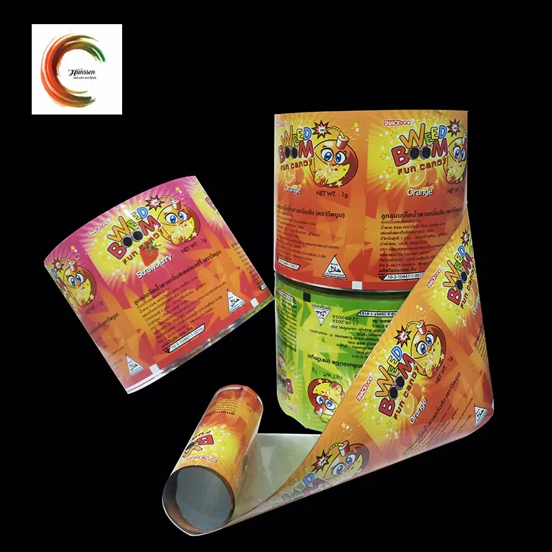 Certificated colorful lollipop candy roll film packaging with custom