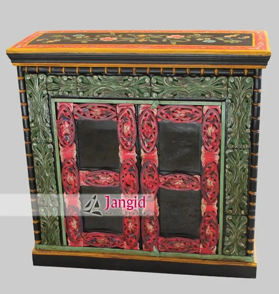 This is solid wooden painted glass sideboard. This is made from acacia wood. This product can be made from other wood also such as mango wood as per buyer's requirement. The size and dimensions of this product can also be customized according to need of our customer. Price will be vary according to size and wood used. The quantity can be made as much as desired. For more color finish please contact us. It will occupy 0.333 ( approx ) CBM in a container. CBM is a unit which is generally used to calculate how much a product occupy space in a container. From this we can calculate approx possible products quantity can be stuffed in a container. For 20 ft container 30 CBM (approx) products can be stuffed, for 40 high cube 68 CBM (approx) products can be stuffed.