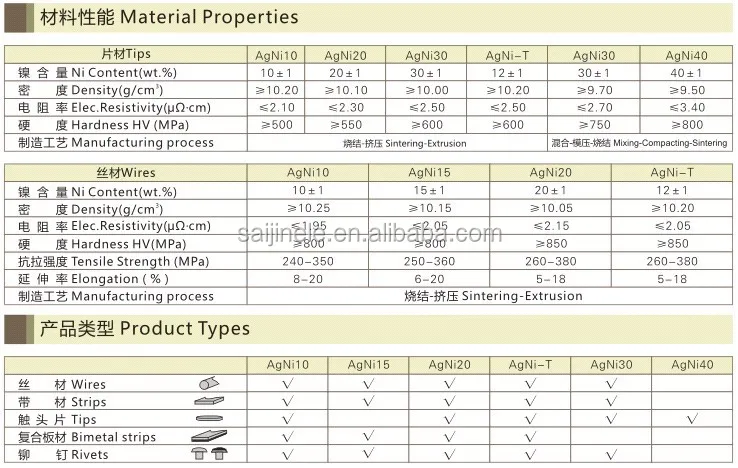 Material | AgNi10 ,AgCdO10/15/20,AgSnO2(10/12),AgZnO and base is copper | ||||