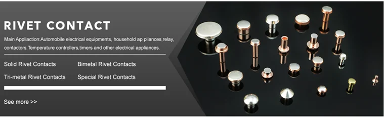 Product Name | ROHS ISO9001 Switch accessories AgNi Ag AgSnO2 electrical silver copper bimetal contact rivets | ||||