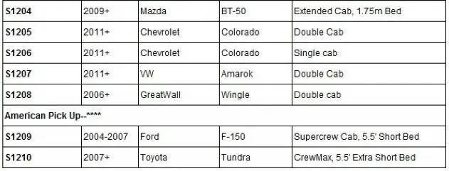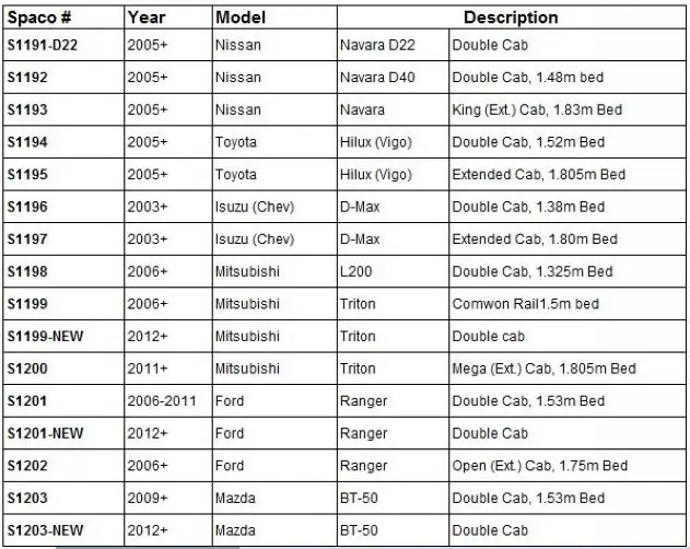 4.Canopy/Hardtop List: