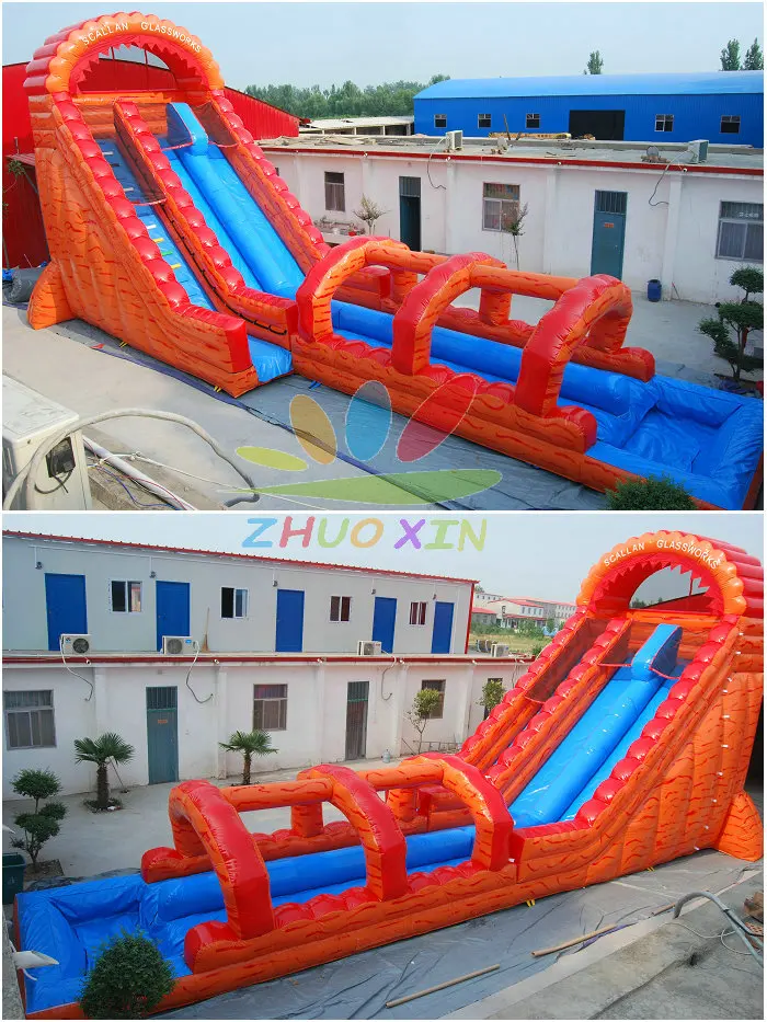 ZhuoXin Inflatable Water Slide, material passed CE, EN71 Certification and has neoteric type, bright colors and different size. Besides, inflatable water slides from my company supports OEM and ODM Service.
