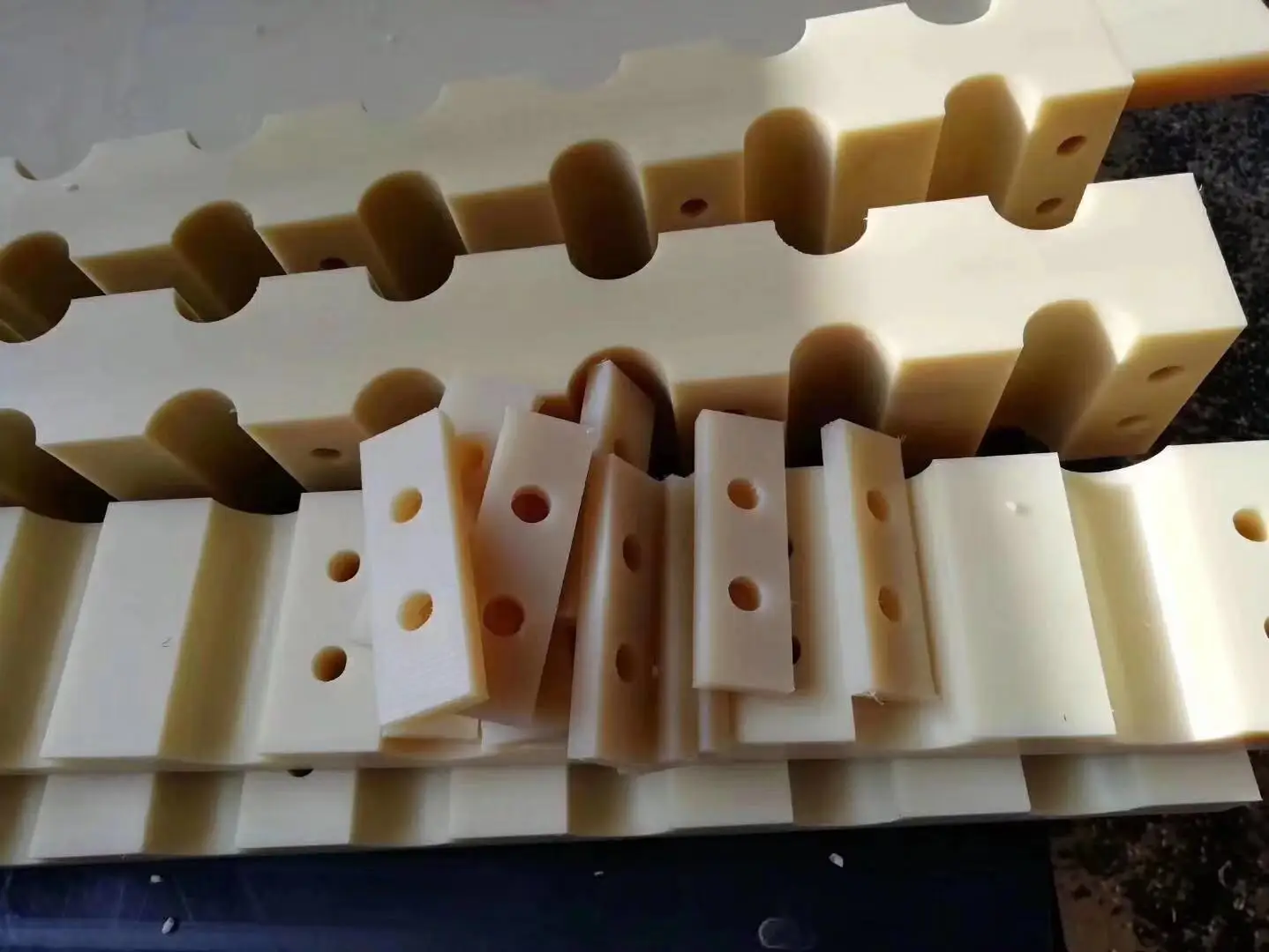 1: Nylon 6 (White): This material has the most superior overall properties, including mechanical strength, stiffness, toughness, mechanical shock absorption and wear resistance. These properties, combined with good electrical insulation and chemical resistance, make nylon 6 a "universal grade" material for the manufacture of mechanical structural parts and maintainable parts.
