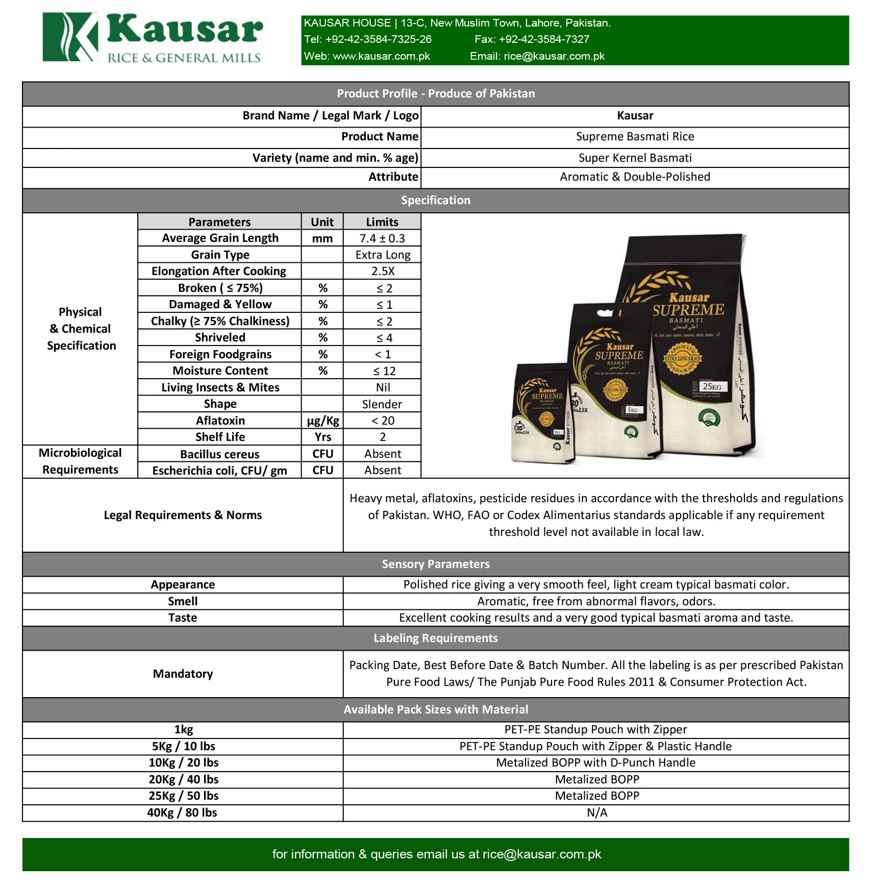 Kausar Rice is the first rice manufacturing company in Pakistan to introduce & ensure the implementation of a unique batch-code, where we tag every bag of rice produced and consumed. This traceability system allows us to produce a completely customized product to fulfill the nutritional requirement of the rice at any stage of its life cycle, across Pakistan.