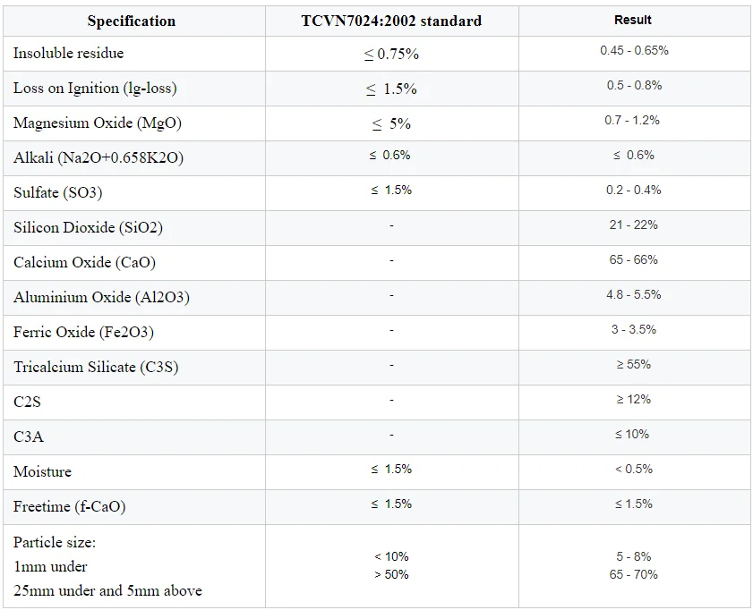 VHP Portland Clinker is manufactured according to Vietnamese standard TCVN 7024: 2002. With the plentiful and stable production material source, VHP Portland Clinker product has good quality, meeting the standards of domestic and foreign markets.