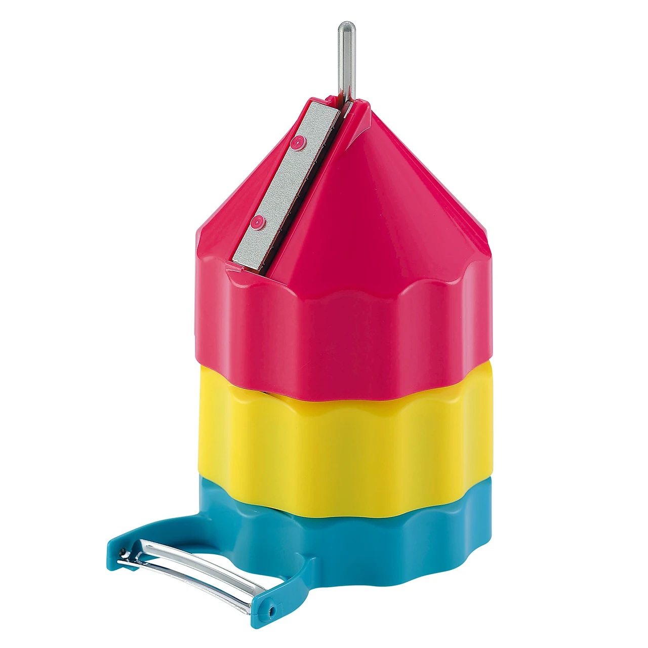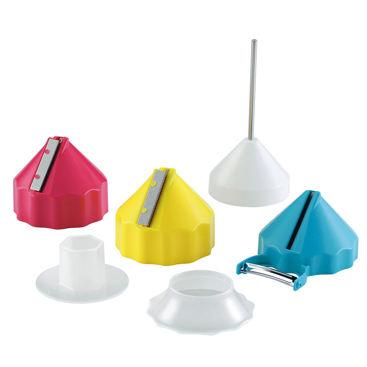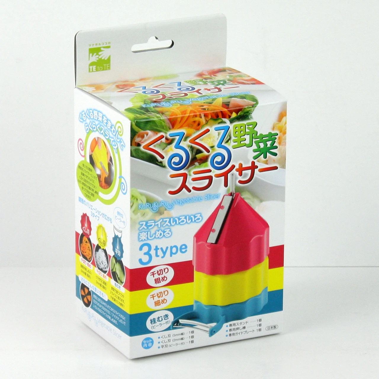 You can easily slice the vegetables by rolling them like a pencil. You can make slices such as shredded (coarse and thin) and peeled. When using thin vegetables, use the attached dedicated guide plate. There is also a special push bar for small vegetables. Can be stored neatly with a dedicated stand. Since the blade is inside, children can cook it safely. Sliced vegetables can be used for salads, hot pot dishes, etc., and vegetables can be used in place of noodles for healthy cooking. 【item】 YS-01 Kurukuru Vegetable Slicer 【set content】 ・Comb blade red (rough): diameter 84 x height 78 mm ・Comb blade yellow (thin): diameter 84 × height 78 mm ・Flat blade blue (Katsura peel): Width 84 x depth 108 x height 65 mm ・Guide plate: diameter 84 x height 26 mm ・Push bar: Diameter 71 x height 40 mm ・Stand: Diameter 74 x Height 158mm
