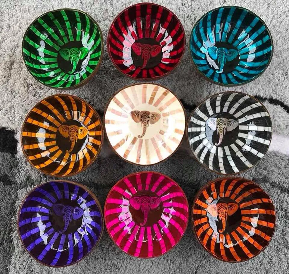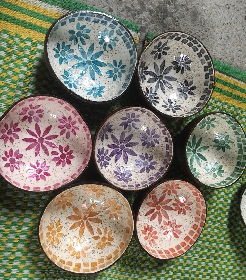 Lacquered coconut bowls with eggshell inlay, made of coconut shell , products of Vietnam.