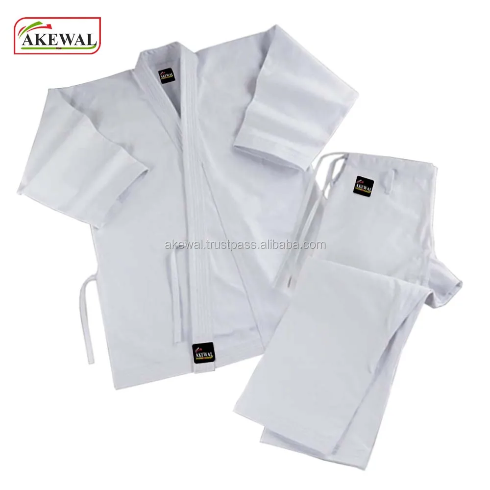 MATERIAL | Karate Uniform Made of 100% Cotton (Also Available in 55/45% Poly/Cotton) Light weight 6.50-O-Z pre-shrink Available in 7.50,8.50-O-Z Trousers elastic & draw string waist ,With white belt |