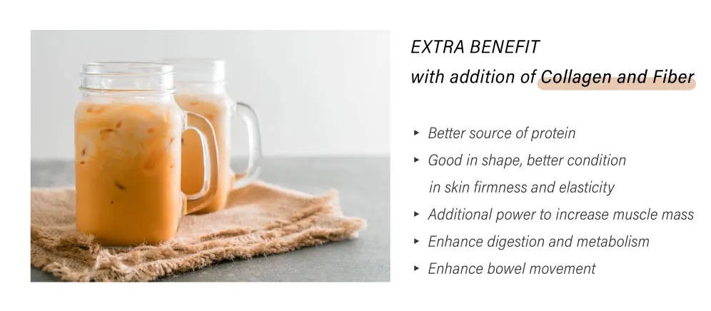 .Whey Protein – help to pack on the muscle during post-workout process .Collagen – better source for muscle building, keep strength of bone and joint, and skin health .Fiber – healthy gut, healthy body