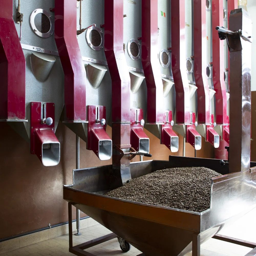 STORAGE | After the roasting, we stock the coffee for few days, then we mix different origins to obtain blends and pack them. |