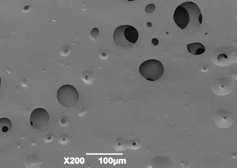 Many fine void spaces made by foaming bubbles exist on the acrylic resin coating surface. These void spaces perform adhesive characteristic on smooth surfaces such as glass and plastic.