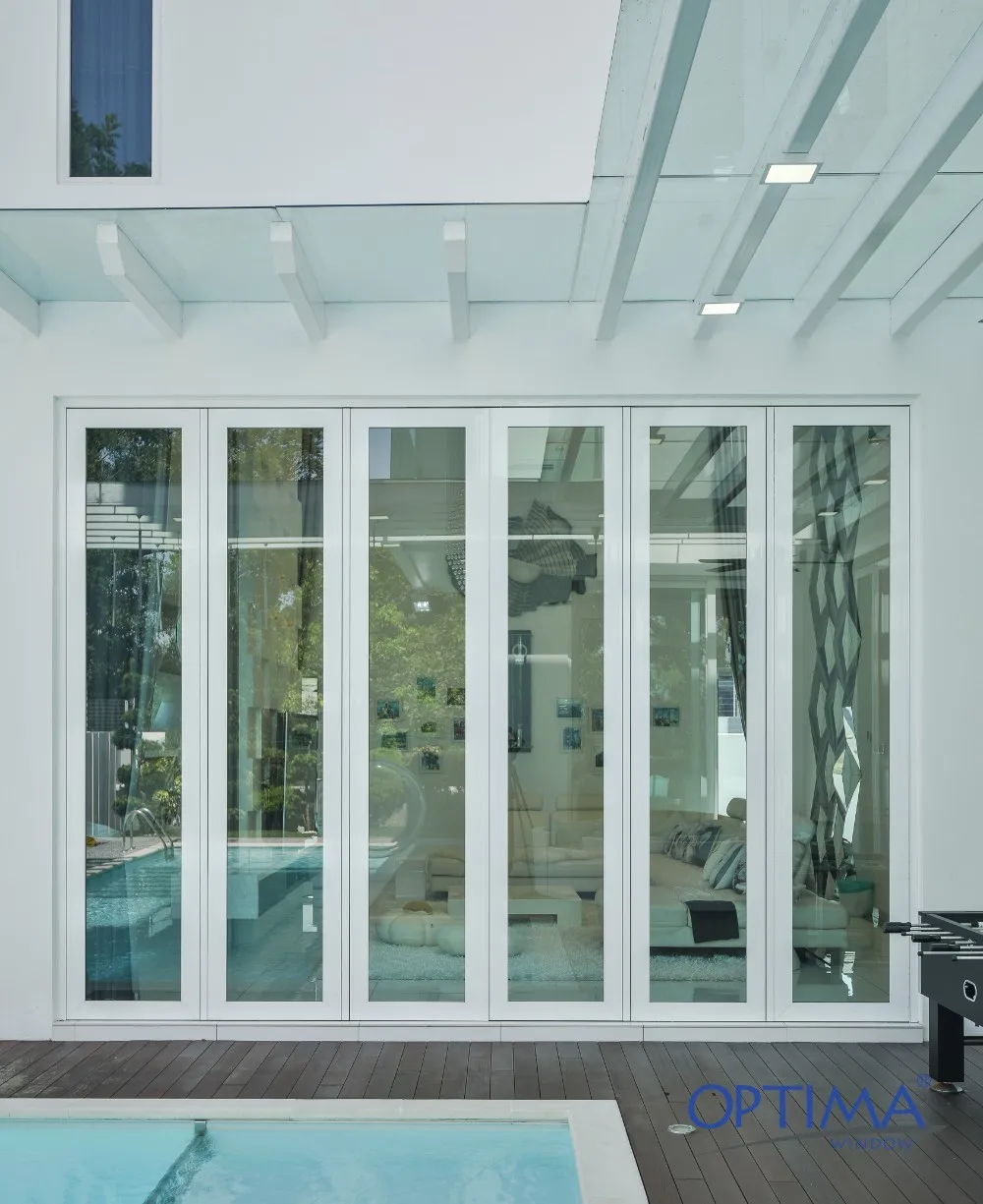 Optima 88 folding door system is able to transform any interior into a totally different view, while offering home owners flexible access and optimum security by using a 2-point locking system that secures both top and bottom of the door panel. Using specially designed heavy duty pivot system, rest assured that you've got a great and easy to use product in hand. So sit back, relax and enjoy the view. Above all, Optima 88 can be built up as high as to 5 meter in height.
