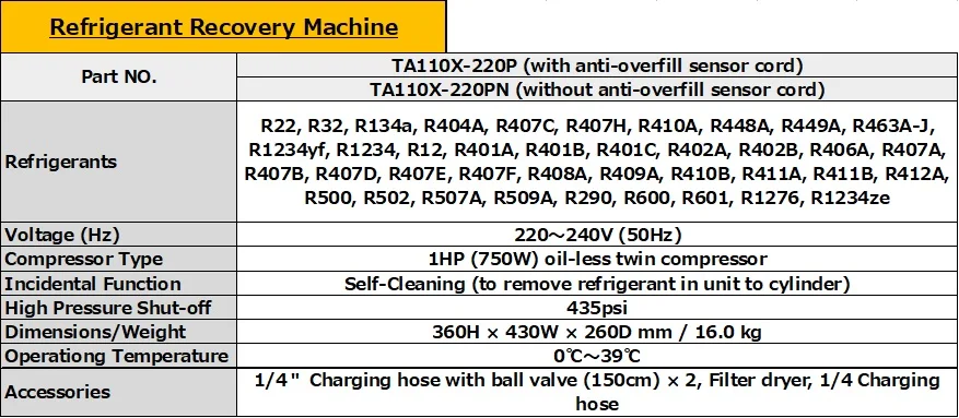 ■Category V : R410A/B, R32, R404A, R402A, R407A/B, R507A