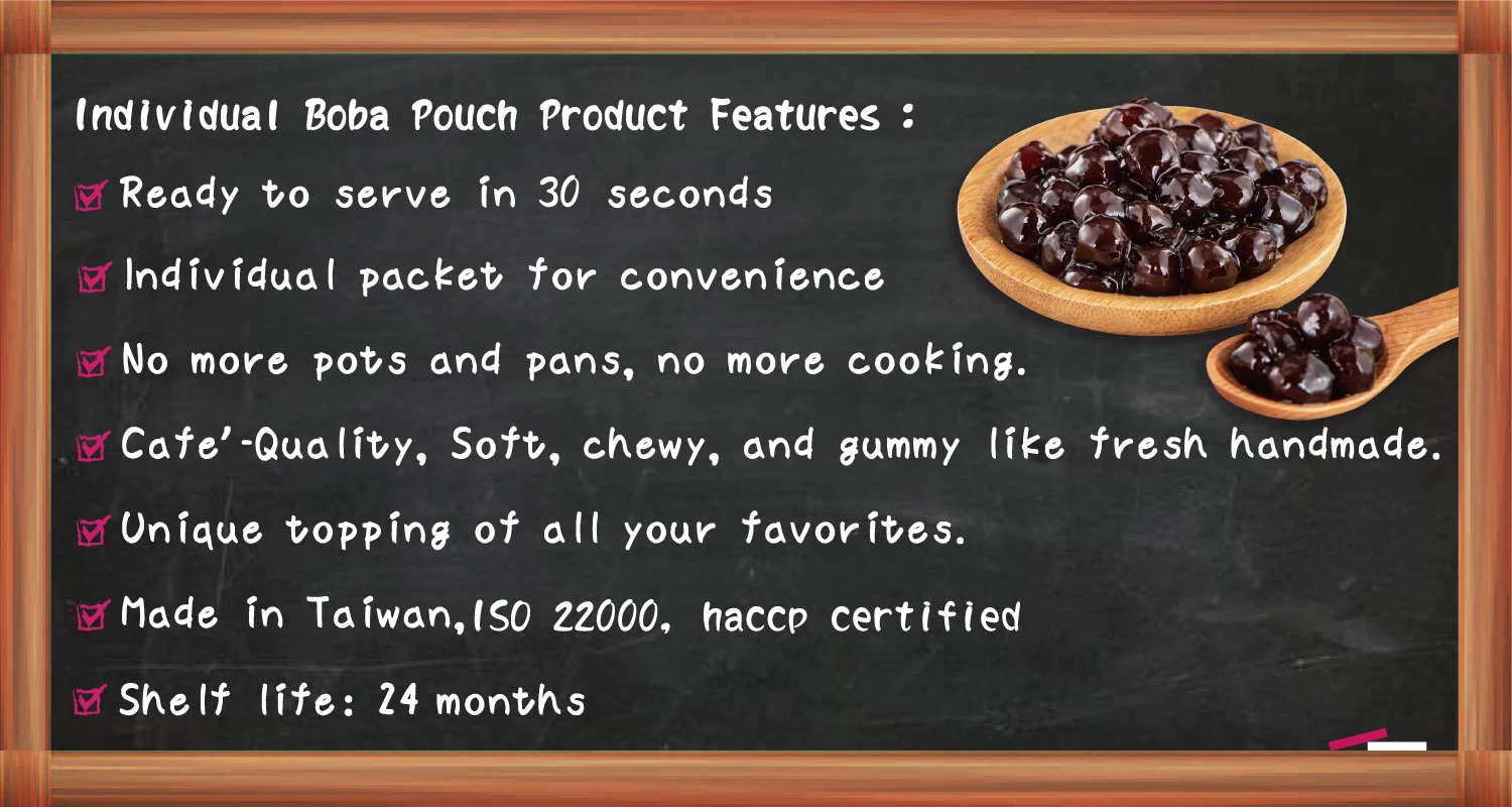 Orbitel International Corp. is dedicated to revolutionizing how bubble tea is typically prepared. We pride ourselves on producing Taiwan's No. 1 Tapioca Boba and so inventing DIY Instant Bubble Pack for an easy preparation access to the iconic drink. Our factory is subject to food safety standard, which is fully compliant with ISO and HACCP certification. We also have our house brands: O's Bubble for Frozen Instant Boba Pack and Gogo Bubble for Non-Frozen Instant Bubble Tea. Currently, in addition to exporting to USA, Canada and Japanese supermarkets, we start looking for cooperative opportunities across the world.