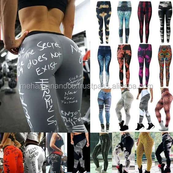 • Women Yoga Pants Sports Leggings White Print Fitness Wear Workout Sports Running Leggings Push Up Gym Elastic Slim Pants offered by Meharban & Co.