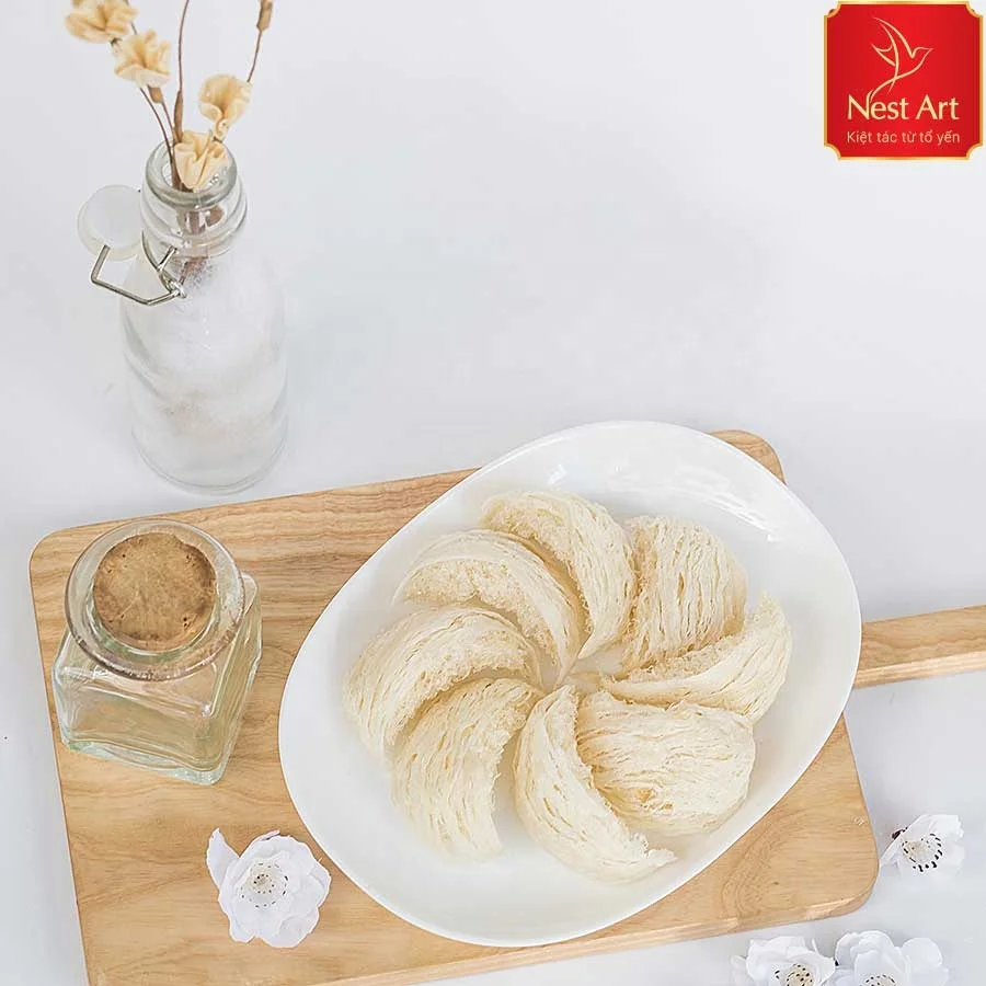 Featured | -Removed feathers, removed impurities. -White ivory, puffy, long, metallic and lustrous. -The shape of the hammock, the lotus leaf. -See the swallow fiber clearly, crumbling easily. |