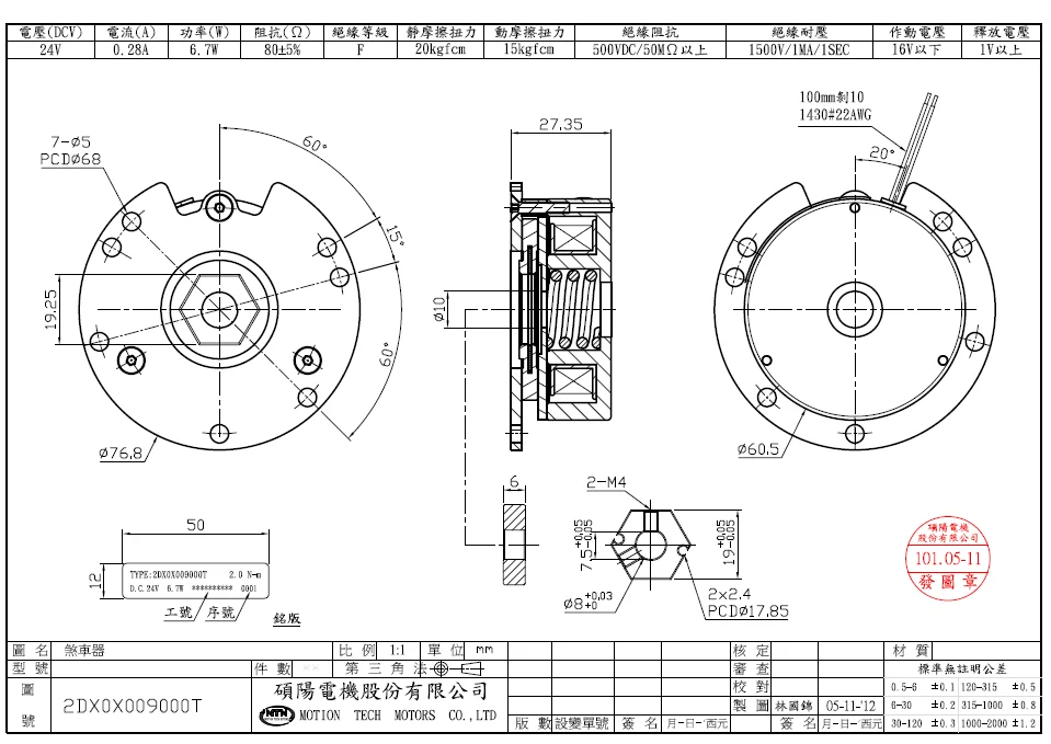 6N-m | With Handle | 2DX0X051001T | 12~48 | Ø8 | 0.7 | 32.15 |