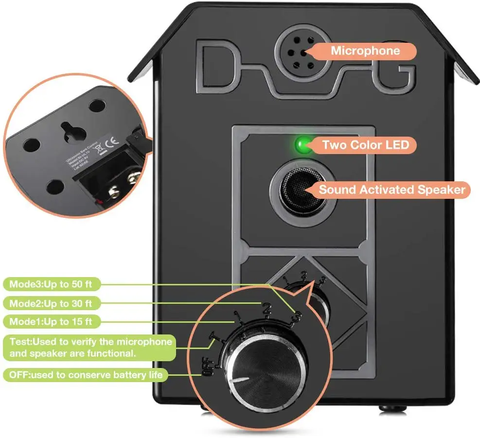 -Detects the sound of barking up to 15 meters | ||