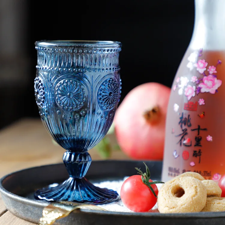 Product Name | Vintage Goblet Colored Wine Glasses Cup Drinking Water Pressed Sunflower Glass Goblets party wedding glass cup |