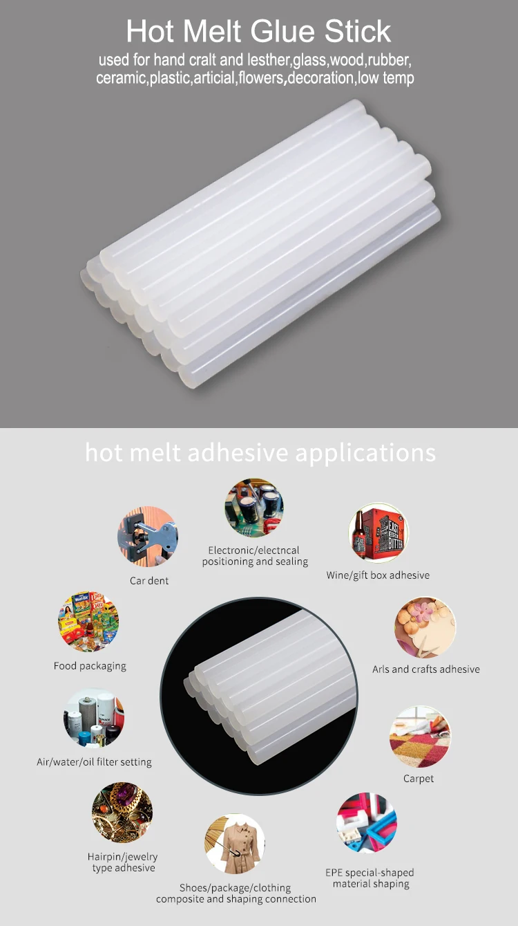 Our hot melt glue sticks is high quality, real transparent. It possesses high tack property and medium to long open time for all kind of home and industrial applications.