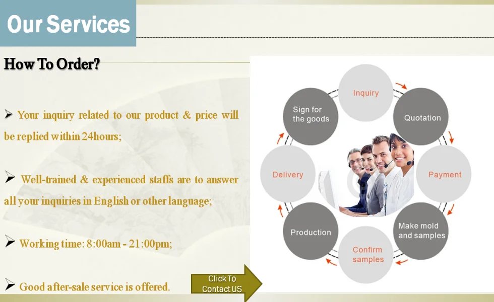 We have our own R & D group and our own factory, which can be customized products for customers. We can customize product according to your 2D/3D drawings or sample!