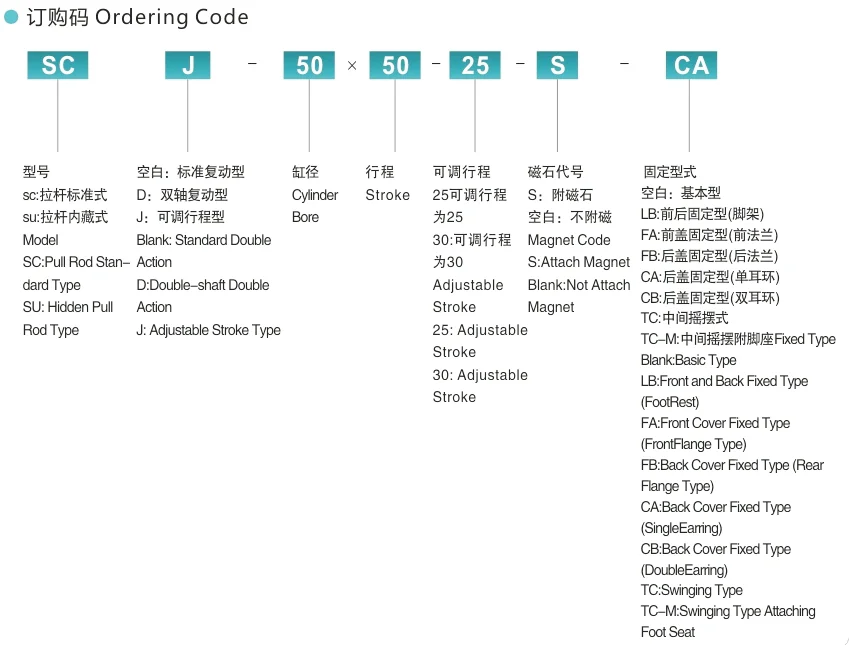 High Quality SC Series Aluminum Material Air Cylinder Double Acting Standard Pneumatic Cylinder